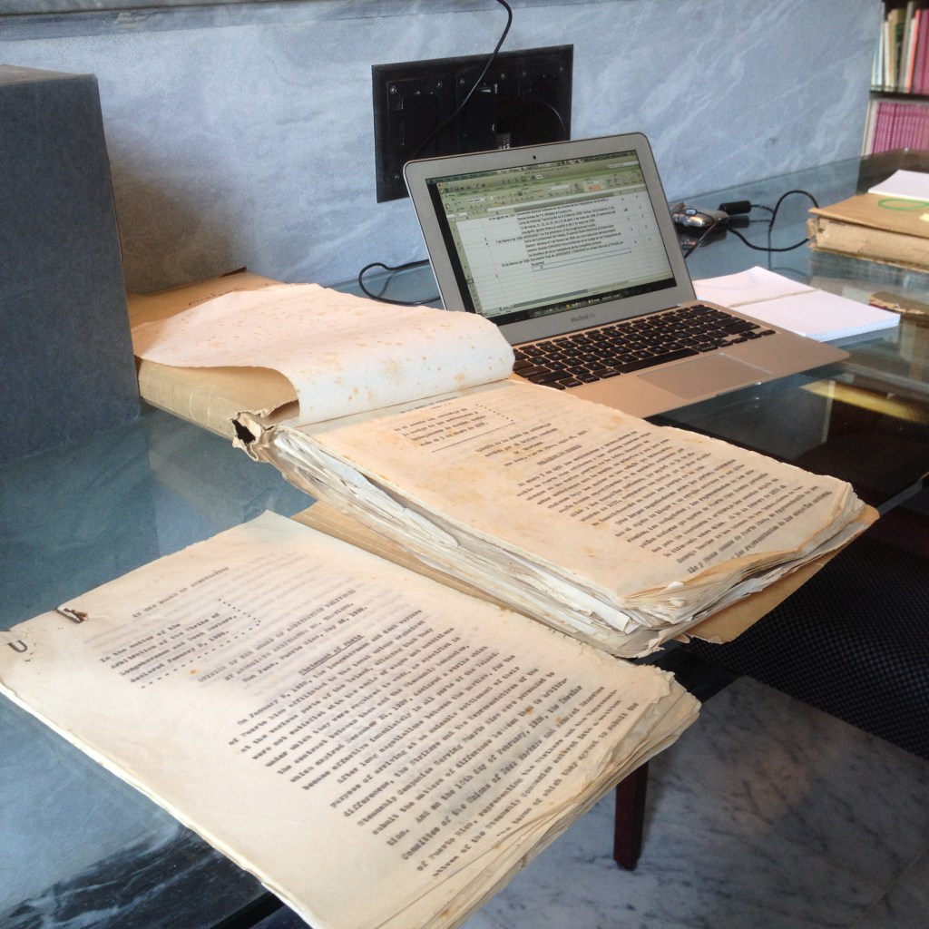 En estos tiempos de cámaras digitales y escáneres que aceleran el proceso, era desesperante ver en ese primer cubículo del Archivo General de Puerto Rico a Fernando Picó, con su paciencia monástica, transcribir documentos en tarjetas… con la certeza de que ese trabajo era, sería y será mejor que el nuestro. El archivo es un extraño castillo llenos de sorpresas, monstruos, pasadizos secretos, trampas y cuartos de placeres extraordinarios… casi llegando al éxtasis.