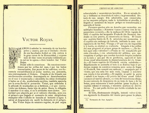 Don Cayetano Coll y Toste, en su libro Crónicas de Arecibo señala que el matriculado José Rojas era Víctor Rojas, reconocido y legendario héroe de nuestros mares, a quien conoció en la última y penosa etapa de su vida. El relato de Coll y Toste está adornado con el lenguaje usado para los seres especiales de esta Isla y reproduce varios poemas –de diversos autores–honrando la épica de este arecibeño, a quien su pueblo natal le ha honrado con un paseo frente al mar y un busto.